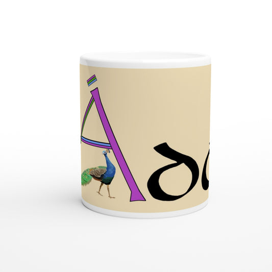 Ádá (Ada) - Personalized white ceramic mug with Irish name Ádá (Peacock Design) (Free Shipping)