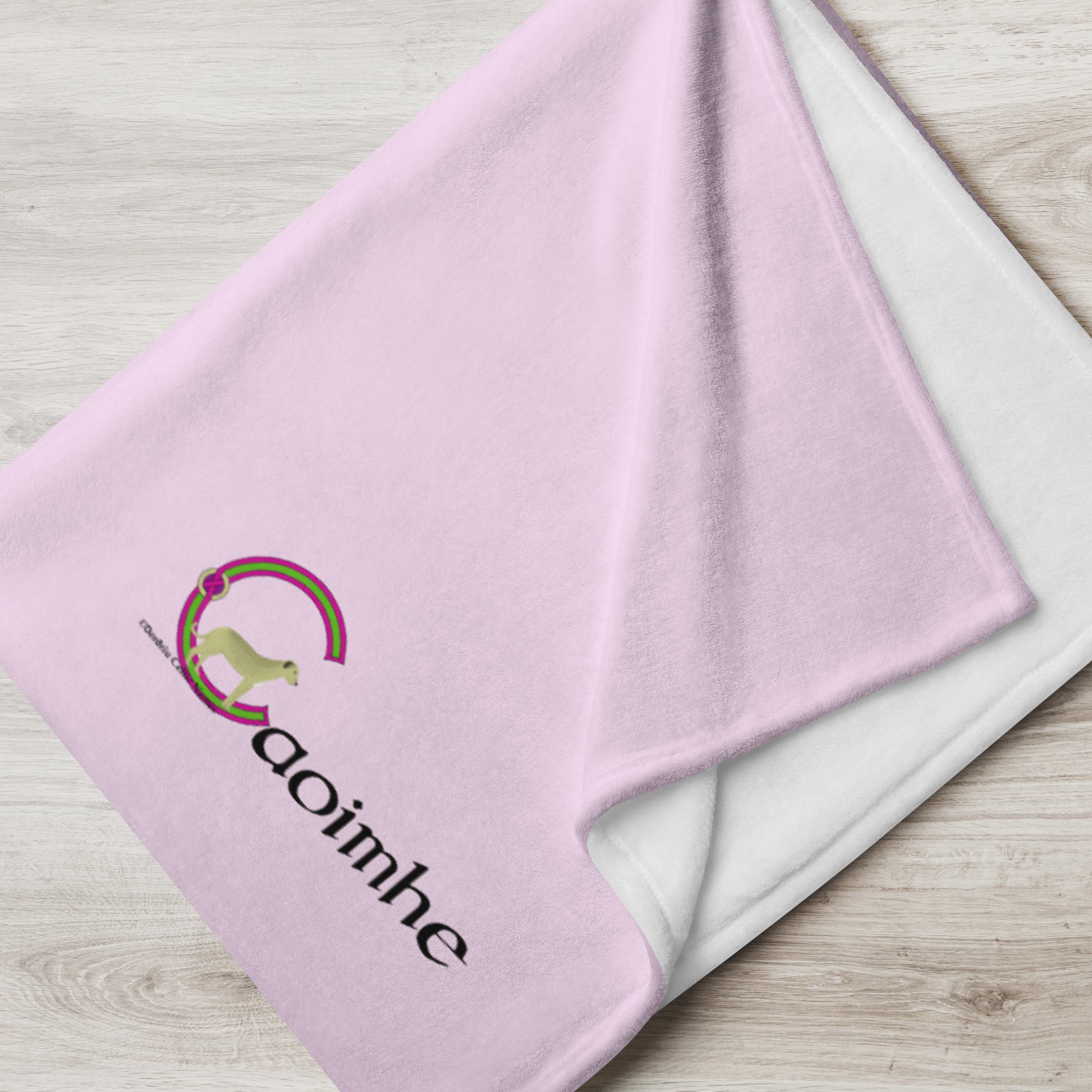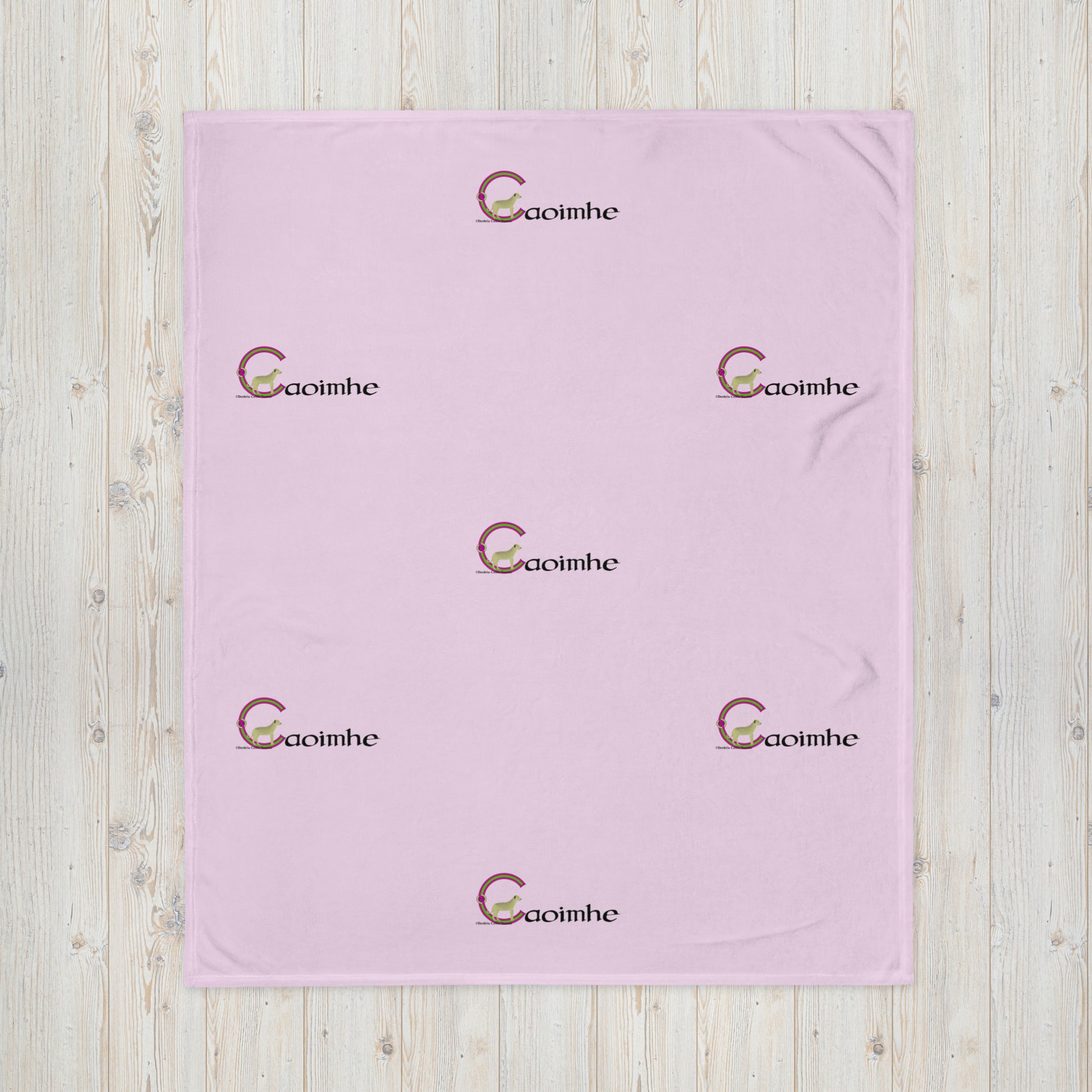 Personalized baby blanket with the Irish language name Caoimhe - a novel Irish gift for a baby shower, christening, birthday or Christmas.
