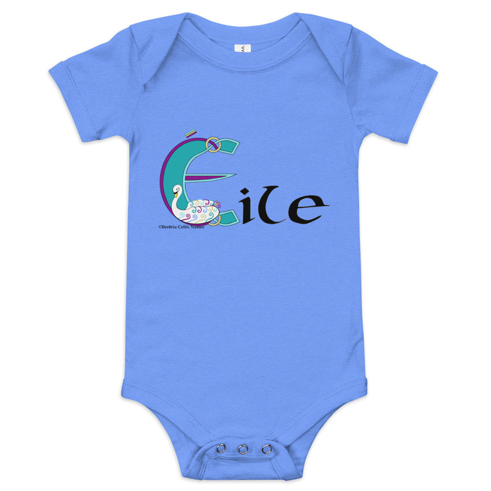 Personalized baby short sleeve one piece with the Irish language name Éile - a novel Irish gift for a birthday or Christmas.