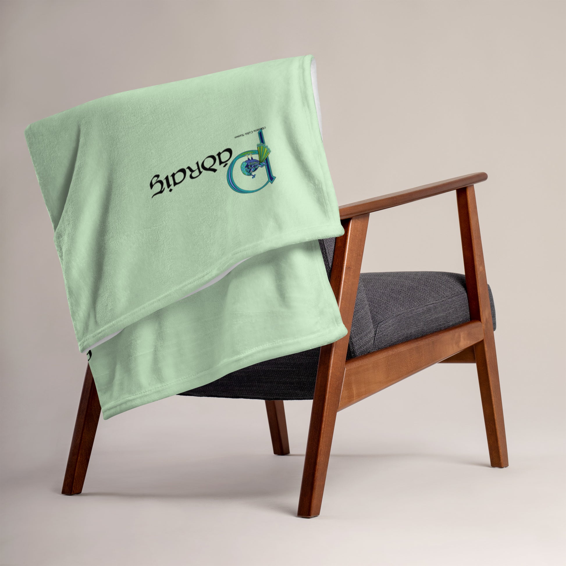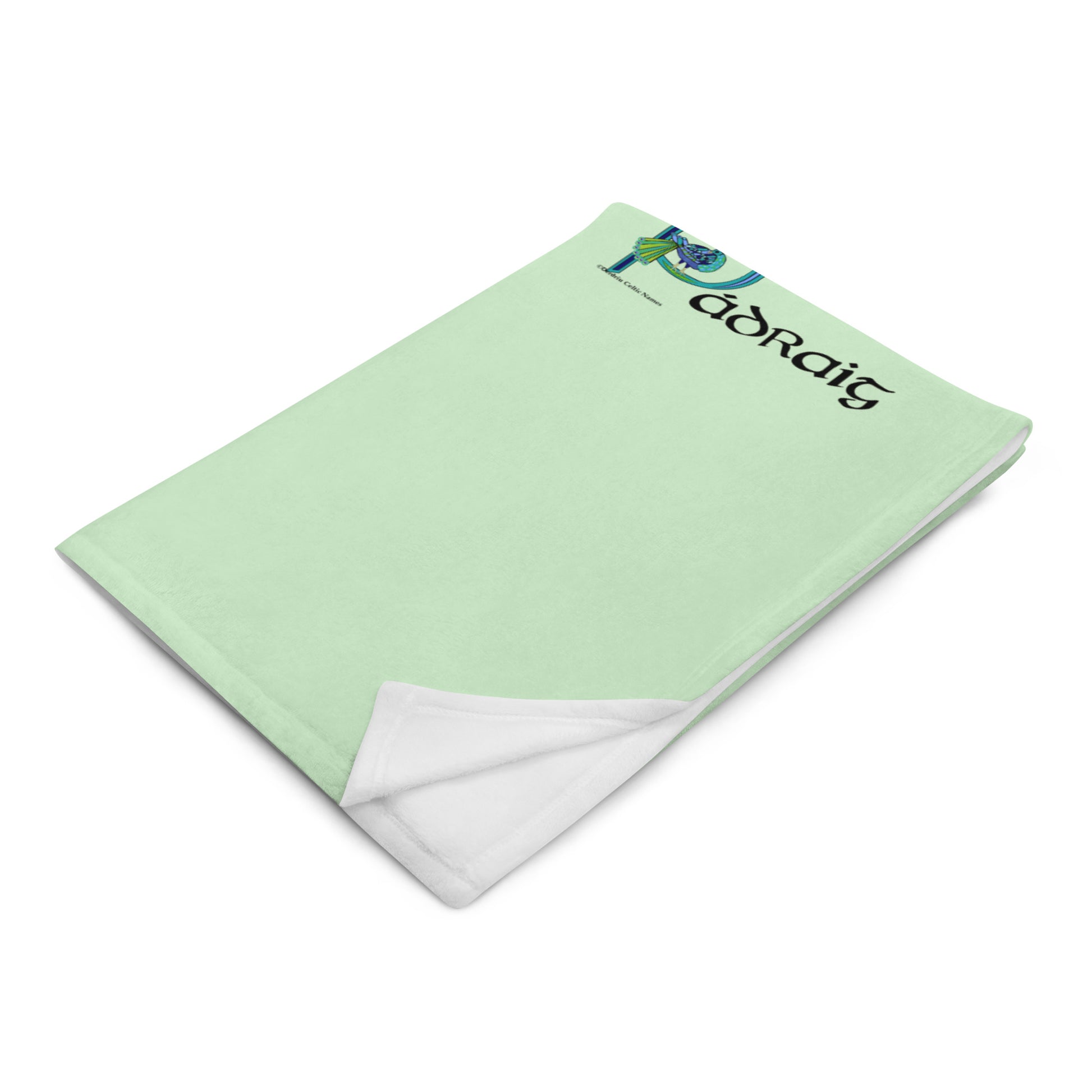 Personalized baby blanket with the Irish language name Pádraig - a novel Irish gift for a baby shower, christening, birthday or Christmas.