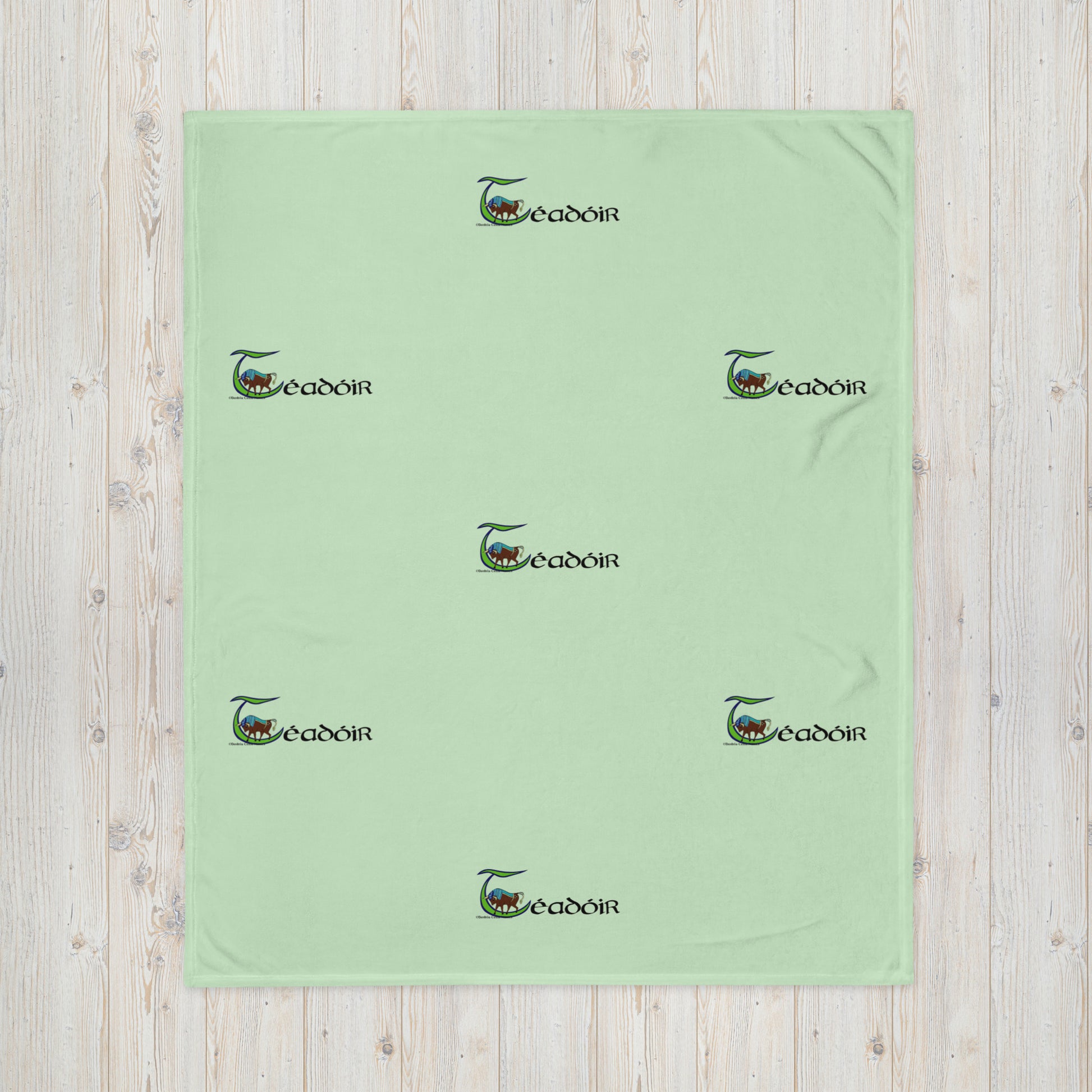 Personalized baby blanket with the Irish language name Téadóir - a novel Irish gift for a baby shower, christening, birthday or Christmas.